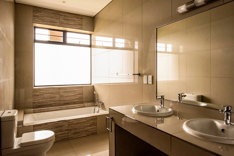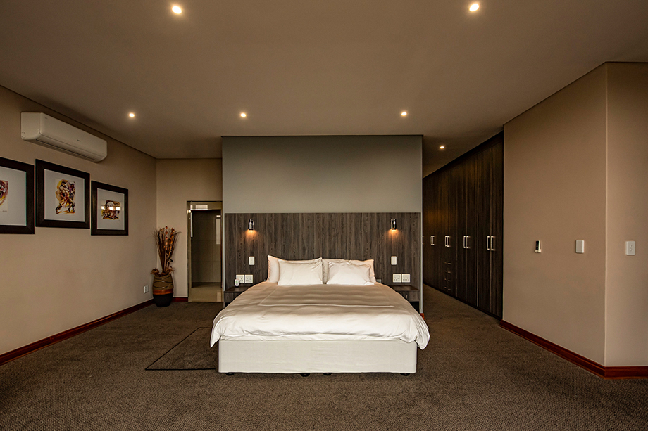 The spacious master bedroom on this floor has a large full en-suite bathroom and is equipped with an air conditioner, TV point, ample built-in cupboards and enough space for a lounge suite.